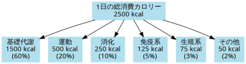 まず、 消費カロリーは大きく分けて3つの要素で構成されます。